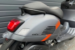 Vespa Gtv łączy autentyczność starego stylu ze współczesnymi detalami. Matowe schematy kolorów z kontrastującą grafiką podkreślają jej sportowy, nowoczesny charakter, a jednoosobowe, sportowe siodło dodaje odrobinę ekskluzywności. Niski reflektor i odsłonięta kierownica, które są hołdem dla dziedzictwa Vespy, definiują kultowy design Vespy Gtv, podobnie jak charakterystyczne „wiązanie” na środku przedniej osłony.