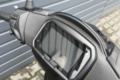 Kolorowy wyświetlacz LCD 5,5” z automatycznym trybem Dzień-Noc zapewnia doskonałą czytelność w każdych warunkach. Kluczowe informacje, takie jak zużycie paliwa, zasięg oraz dane komputera pokładowego, są zawsze w zasięgu ręki i można je łatwo przeglądać za pomocą przycisku Mode na kierownicy. Natomiast charakterystyczny poziomy reflektor LED poprawia widoczność na drodze.