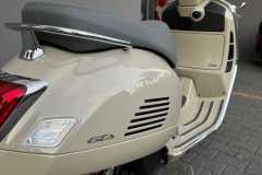 Vespa GTS Model, który łączy styl, stabilność i łatwość prowadzenia w stonowanym i eleganckim designie. Przekonaj się, jak nawet najskromniej wyglądająca Vespa może okazać się zaskakująca. Najnowsze innowacje w Vespie GTS ułatwiaja prowadzenie. Całkowicie przeprojektowane zawieszenie, dwutarczowy układ hamulcowy i system ABS sprawiają, że Vespa jest wydajna podczas hamowania i przyczepna nawet na nierównych nawierzchniach. Każdy szczegół Vespy GTS jest traktowany z najwyższą uwagą. Kolory są błyszczące i jasne, siodło i schowki pasują do siebie stylistycznie, chrom dodaje elegancji, a nowy „krawat”, który zawsze wzbogacał oblicze Vespy, został teraz zaprojektowany w nowoczesnym stylu.